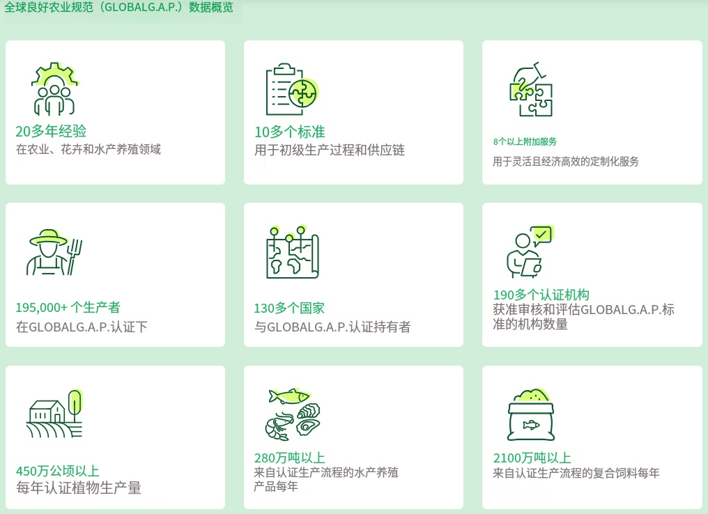 Global G。A。P。(Global Good Agricultural Practice,全球优良农业规范),是一套由全球农业范畴专家、零售商、出产商配合参取制定的国际通行农业出产运营尺度系统,焦点旨是鞭策农业财产实现可持续、平安、通明且负义务的成长,搭建起农产物出产取全球市场需求之间的信赖桥梁。